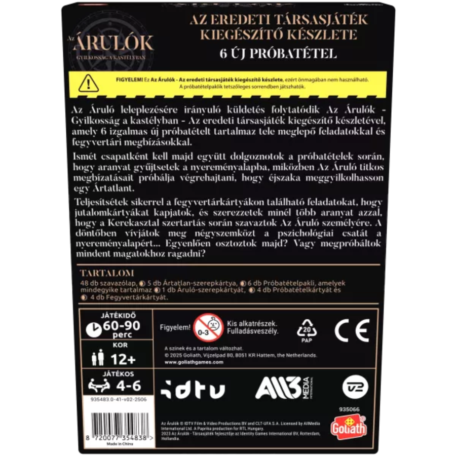 A játék kiegészítő, az eredeti Árulók társasjáték nélkül nem használható!