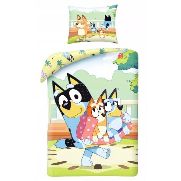 Egyszemélyes, 2 részes, Bluey karakterekkel díszített ágyneműhuzat.