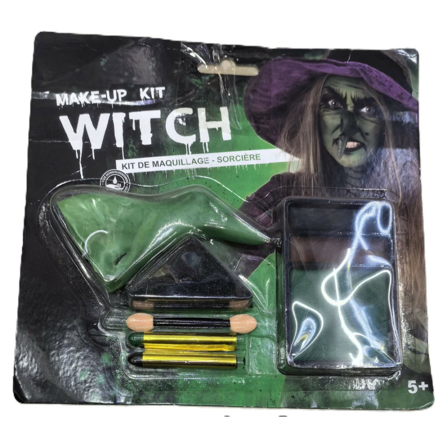 Szeretnéd a következő jelmezbálon vagy Halloween bulin a legrémisztőbb boszorkányként megjelenni? Ezzel a boszorkány sminkkészlettel garantáltan elérheted a hátborzongató hatást! A szett tartalmaz mindent, amire szükséged lehet a tökéletes átváltozáshoz: egy jellegzetes zöld boszorkány orrot, zöld és fekete arcfestéket, valamint sminkapplikátorokat, amelyekkel könnyen és pontosan felviheted a festéket az arcodra.