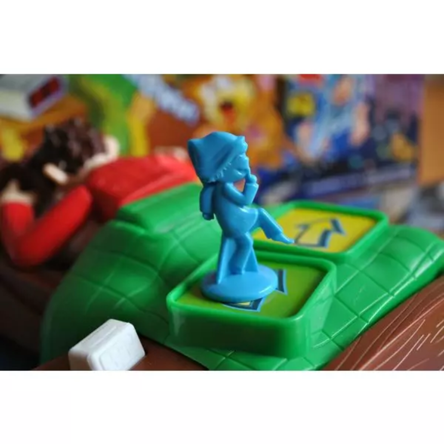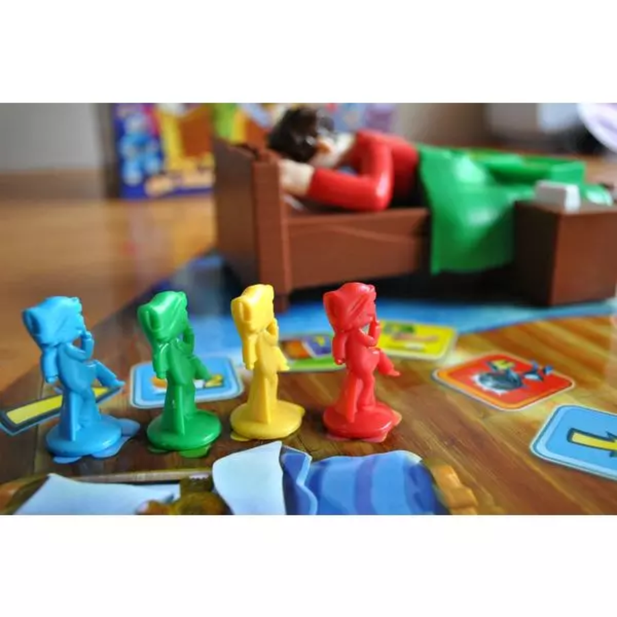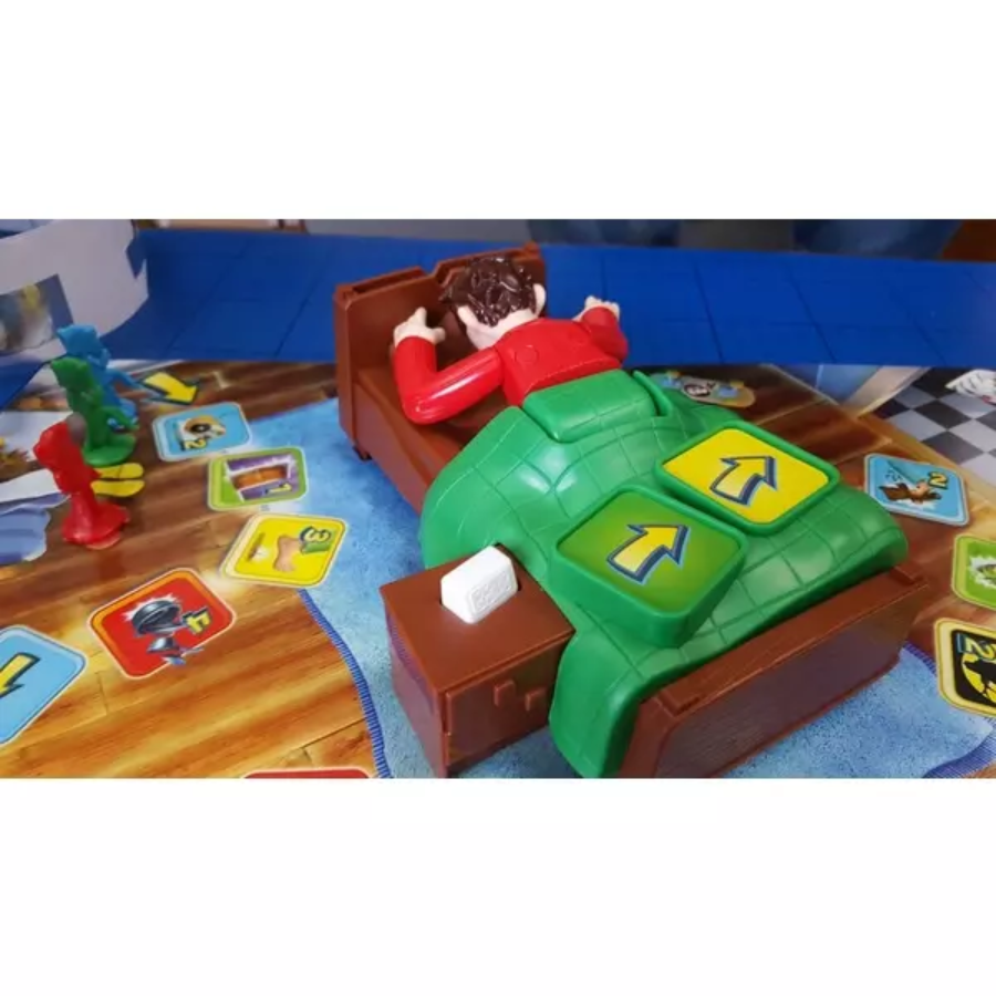 Psssz! Fel ne ébreszd aput! Ebben a szórakoztató társasjátékban lábujjhegyen kell járnotok, különben rajtakapnak! A torta csak rátok vár, de vigyázzatok, csendesen kell osonni, mert a hangos csapdák az utatokat állják, és apu fel fog ébredni! Ebben a játékban nem lesz szükség dobókockára, mert egy pörgettyű segítségével haladhattok a színes mezőkön, ami majd megmutatja, hányszor lehet a gombot megnyomni. Felkészültetek? A torta csak rátok vár!