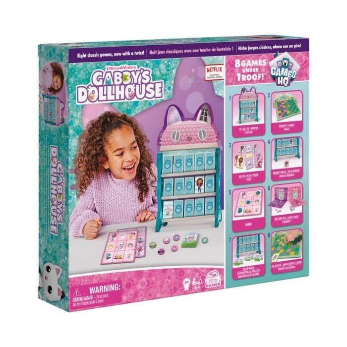 Szerezz 8 játékot egyben a Gabi Babaháza Főhadiszállás társasjáték gyűjteményével. Nyolc miau-sztikus játék 2-4 játékos számára, amelyek mindegyike a mellékelt Gabi babaháza körül helyezkedik el! A régi kedvencek és a vadonatúj kihívások fantáziadús csavarjaival itt az ideje, hogy jöjj és JÁTSSZ!