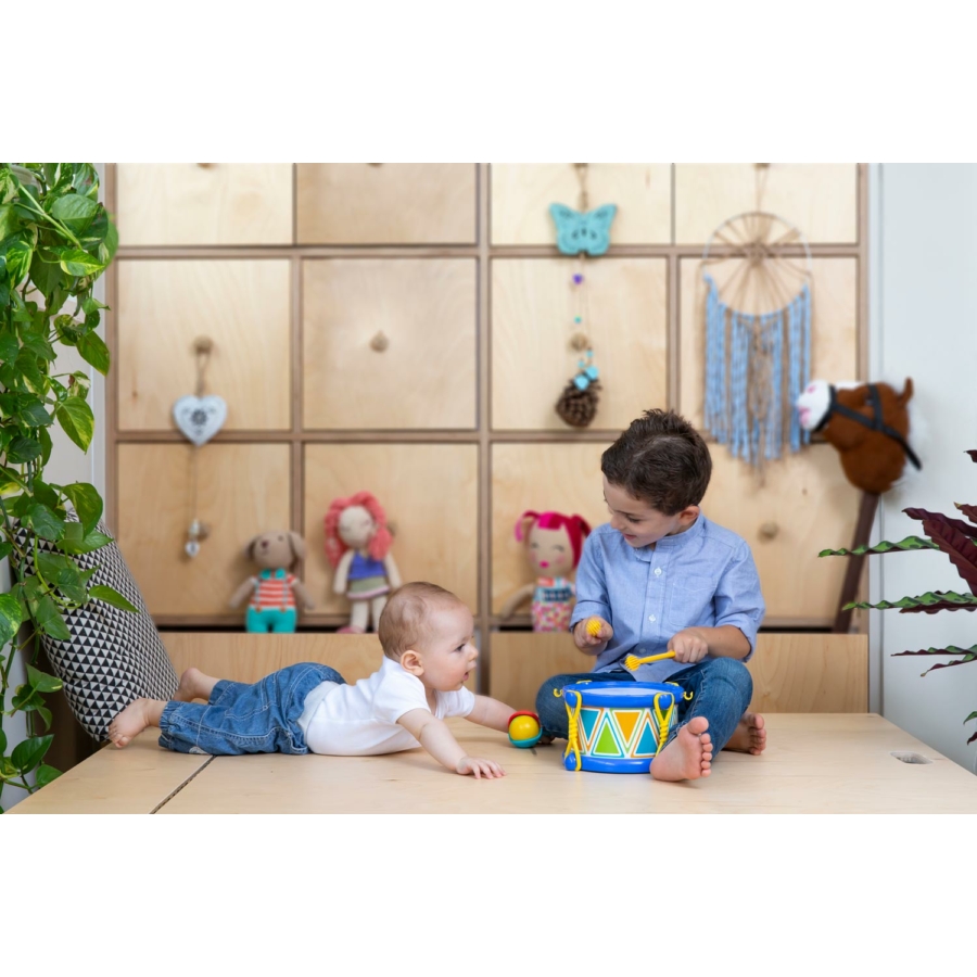 Ami hangot hallat, rossz játék nem lehet! A Halilit Bébi dob segít felfedezni a kicsiknek a zene csodáját, amikor a biztonságos véggel ellátott ütőket a dobhoz ütve eltérő hangokat képesek produkálni. Az izgalom csak nőttön nő, amikor felfedezik a ritmusokat, és a véletlen „kalapálás” egy idő után váltakozó, majd ismétlődő refrénekbe váltanak át.