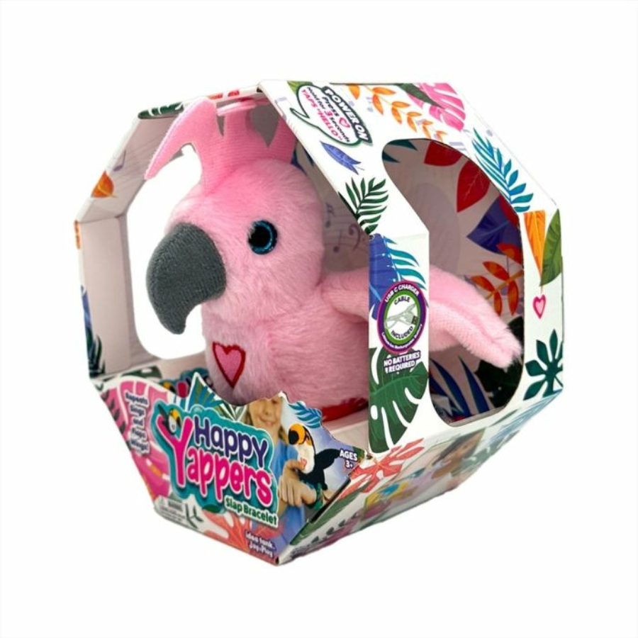 A legszínesebb madarak repkedő rajához most te is csatlakozhatsz! A Happy Yappers interaktív plüss madarakat a pánt segítségével könnyen a csuklódra ülnek. Csak nyomd meg a szívecskét a mellkasukon, és máris indulhat a közös játék! Ezek a madarak csiripelnek, énekelnek, beszélnek hozzád, és akár meg is ismétlik, amit mondasz.