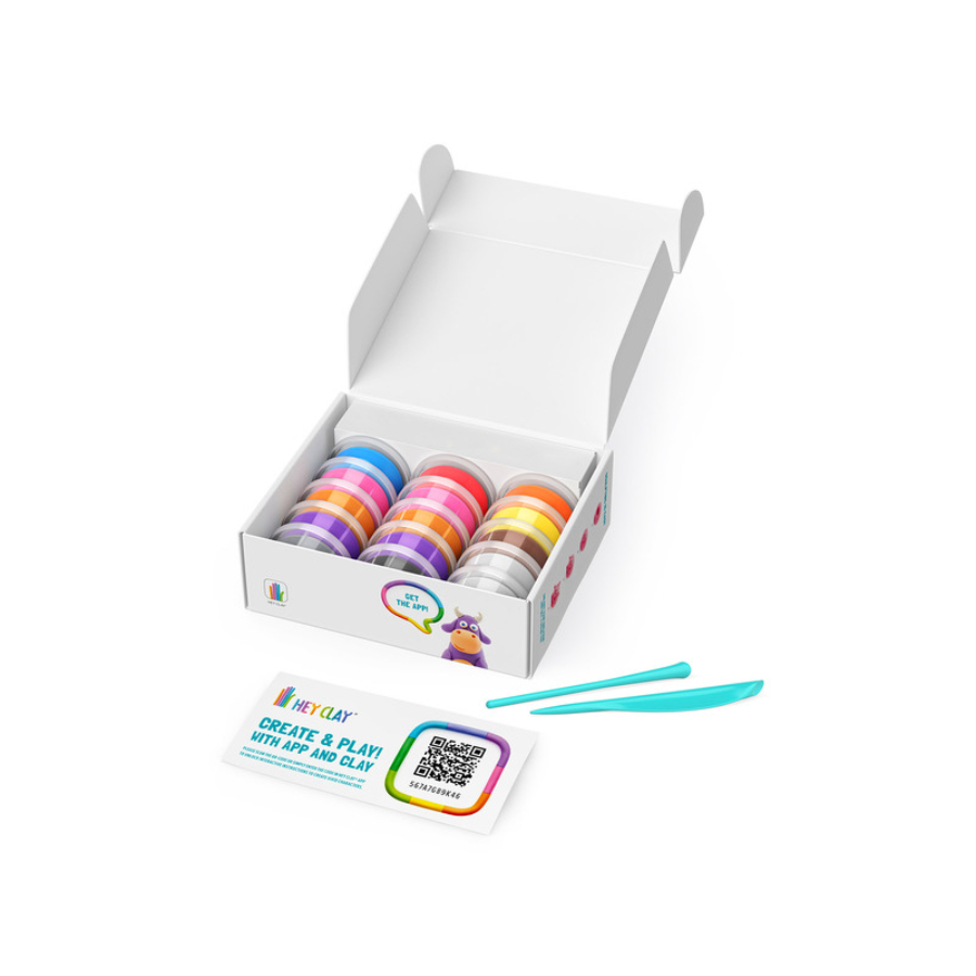 A Hey Clay gyurma szettel minden kreatív gyerek szabadjára engedheti a fantáziáját, és kedves, színes és különleges figurákat formázhat meg. Az alkotásban egy applikáció is segítségére lesz, lépésről-lépésre követheti a figurák összeállításának menetét. A könnyen formálható, rendkívül puha anyag a levegőn 24 óra elteltével megszilárdul, így az elkészült figurákkal a későbbiekben játszani is lehet. A gyurma nem ragad, nem hagy foltot a ruhán és biológiailag lebomló anyagból készült.Tipp: Ha a gyurma száraz, maximum 4 óra elteltével egy kevés víz hozzáadásával még "fel lehet frissíteni". A fel nem használt gyurmát a gondosan lezárt dobozban kell tárolni, különben kiszárad.