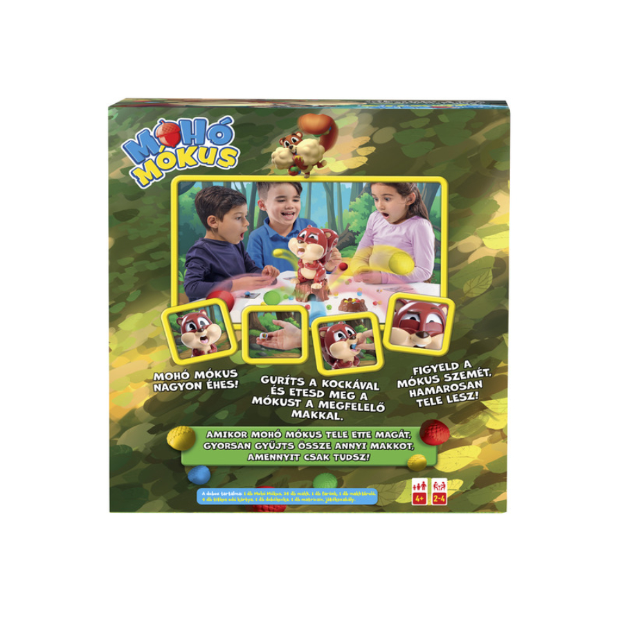 A Mohó Mókus egy mókás, akár már 4 éves kortól is játszható társasjáték, amelyben a játékosok minél több makkok szeretnének gyűjteni, és ezekkel megetetni a torkos mókuskát. A játék szabálya egyszerű. A soron következő játékos dob egyet a kockával: ez megmutatja, hogy milyen színű makkal kell megetetnie a mókust. Amikor a mókus pocakja megtelt (ez a szemén is látszódik), kiköpi a makkokat. Ekkor a játékosoknak össze kell gyűjteniük annyi makkot, amennyit csak tudnak. A játék győztese az, aki a legtöbb makkot gyűjti össze.