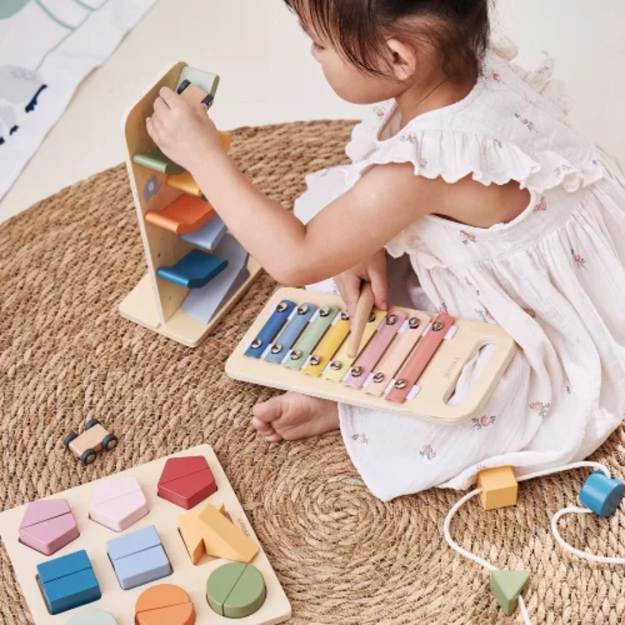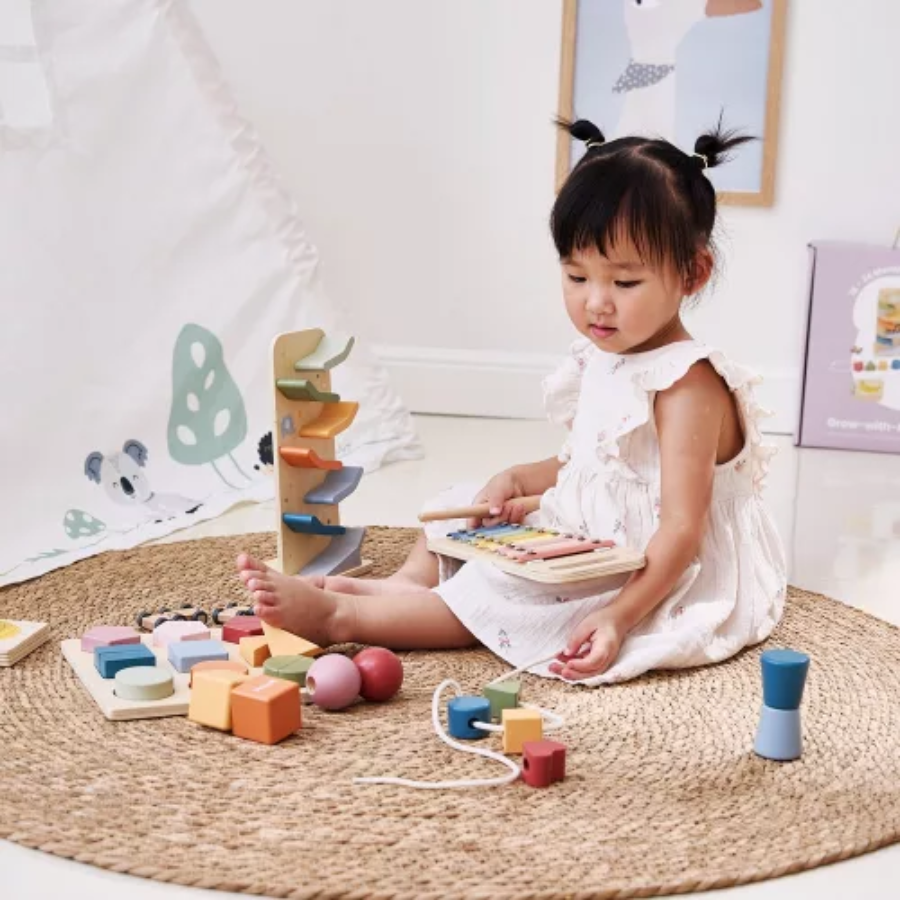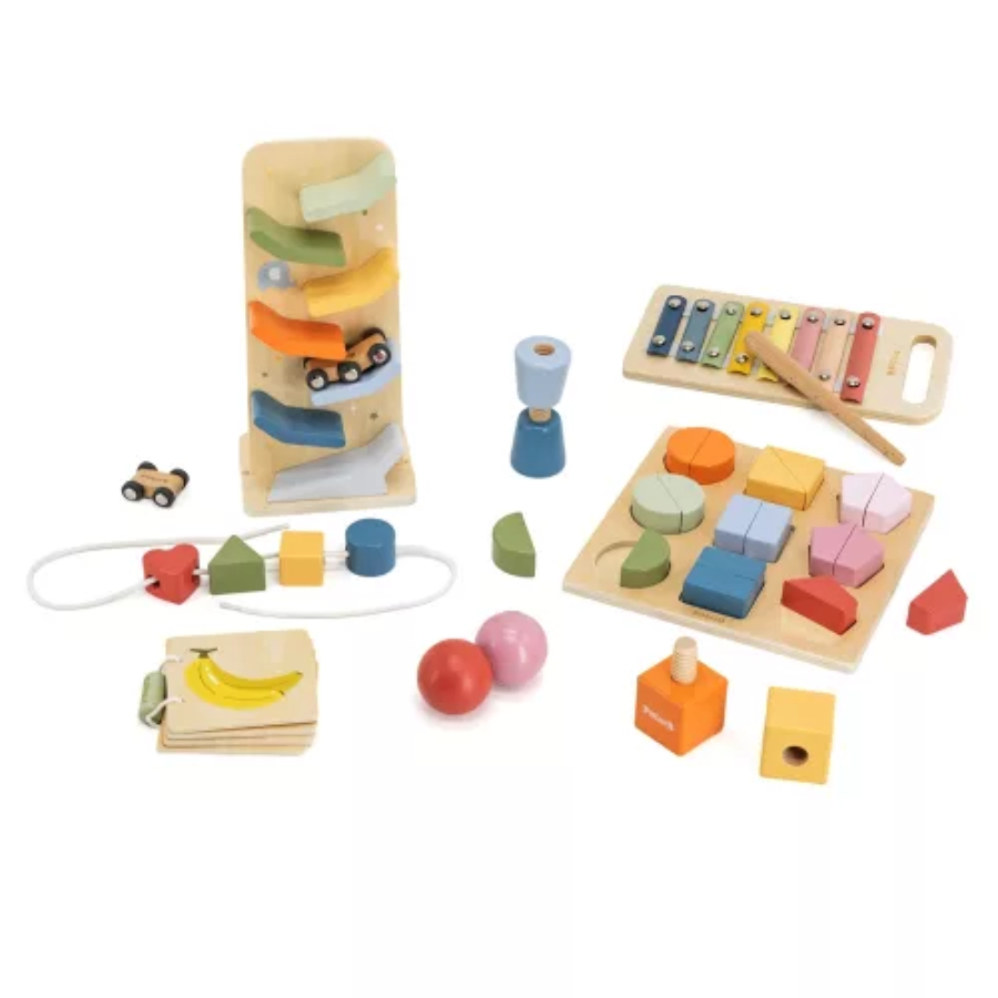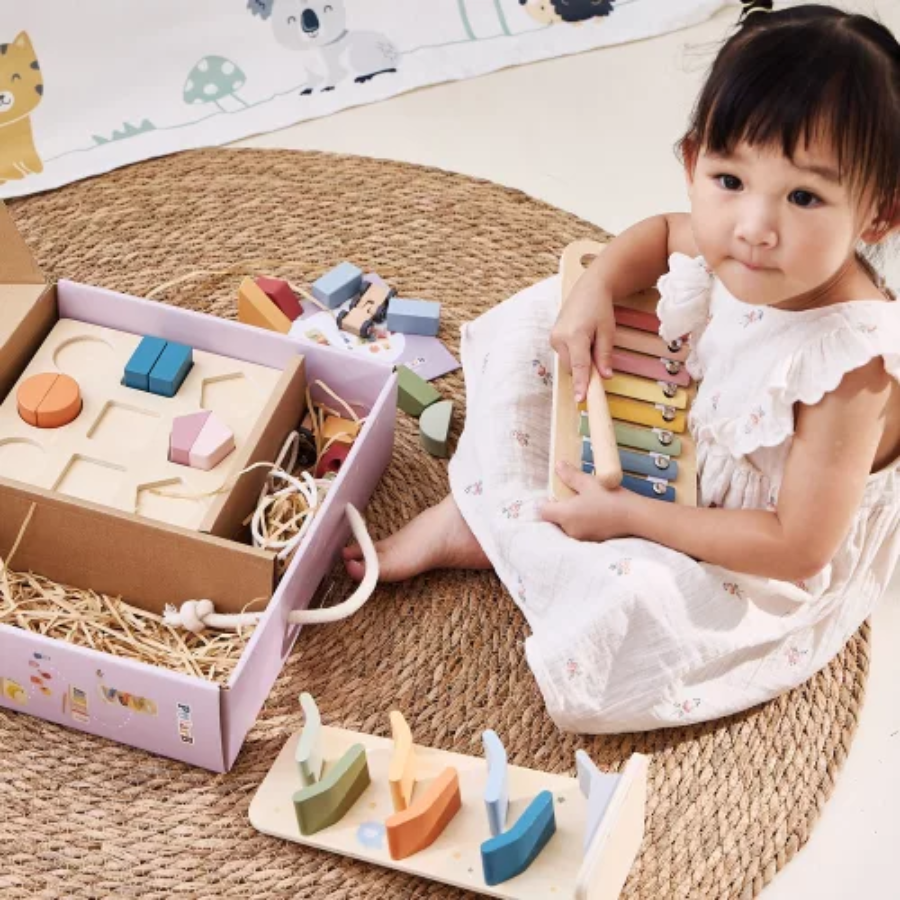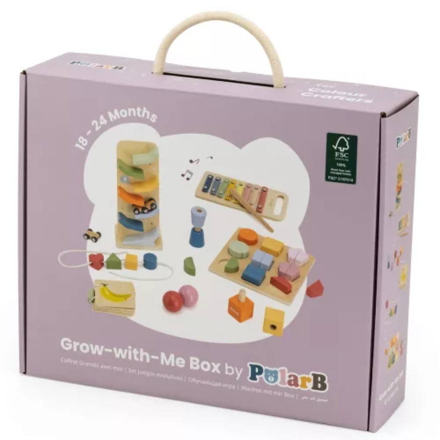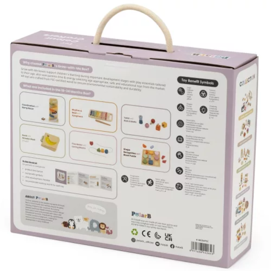 Gyermeked ebben a szakaszban rengeteg felfedezést tesz a való világról. Ez a doboz új kihívásokat kínál a ritmus, az ujjügyesség, a szín- és formasorbarendezés, az ok–okozat megértése, valamint a fizika korai bevezetése terén.
