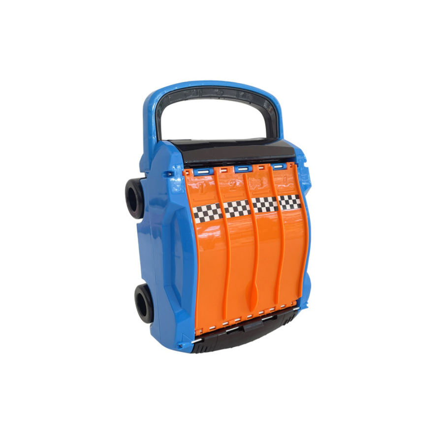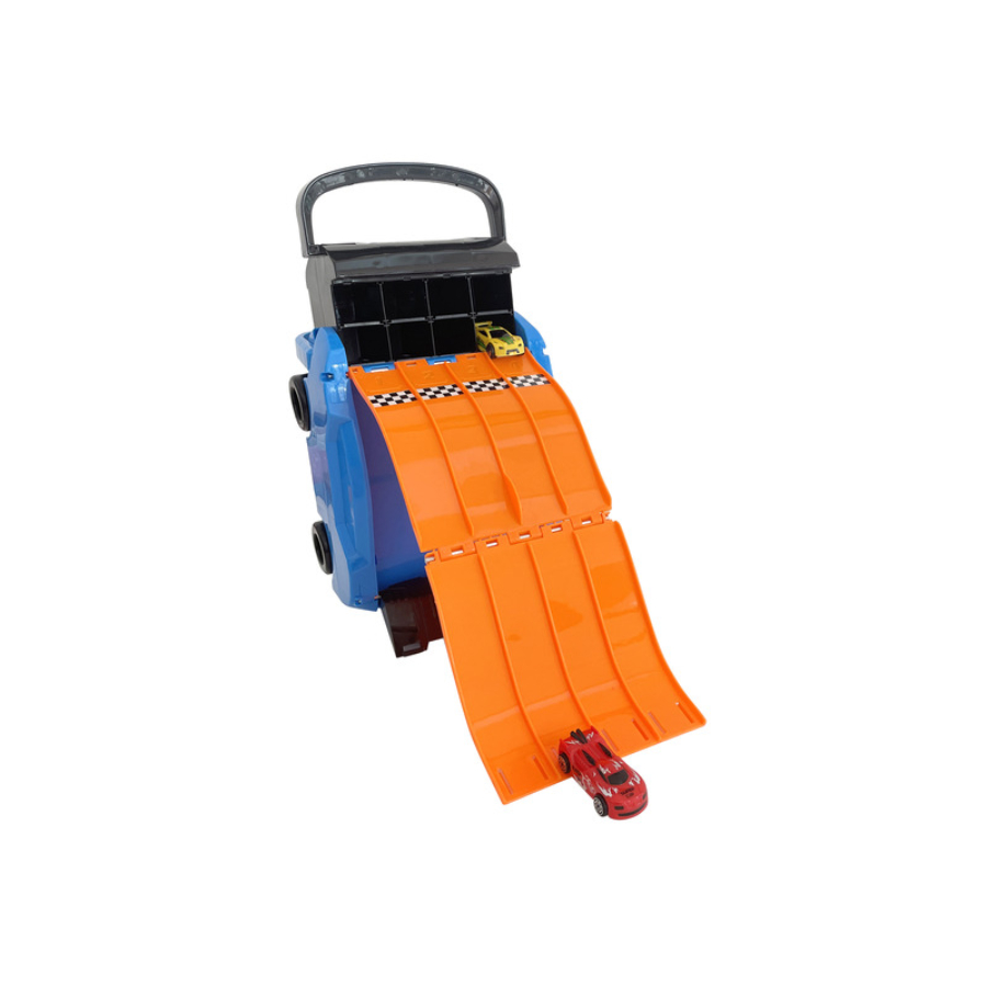 • Tárolórekesz: A beépített tárolórekesz segítségével az autók és pályaelemek rendezetten tárolhatók.