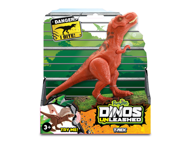 Ez az interaktív T-Rex igazi dinoszauruszként ordít és sétál. Mozgatja a száját, és puha gumi farka van.